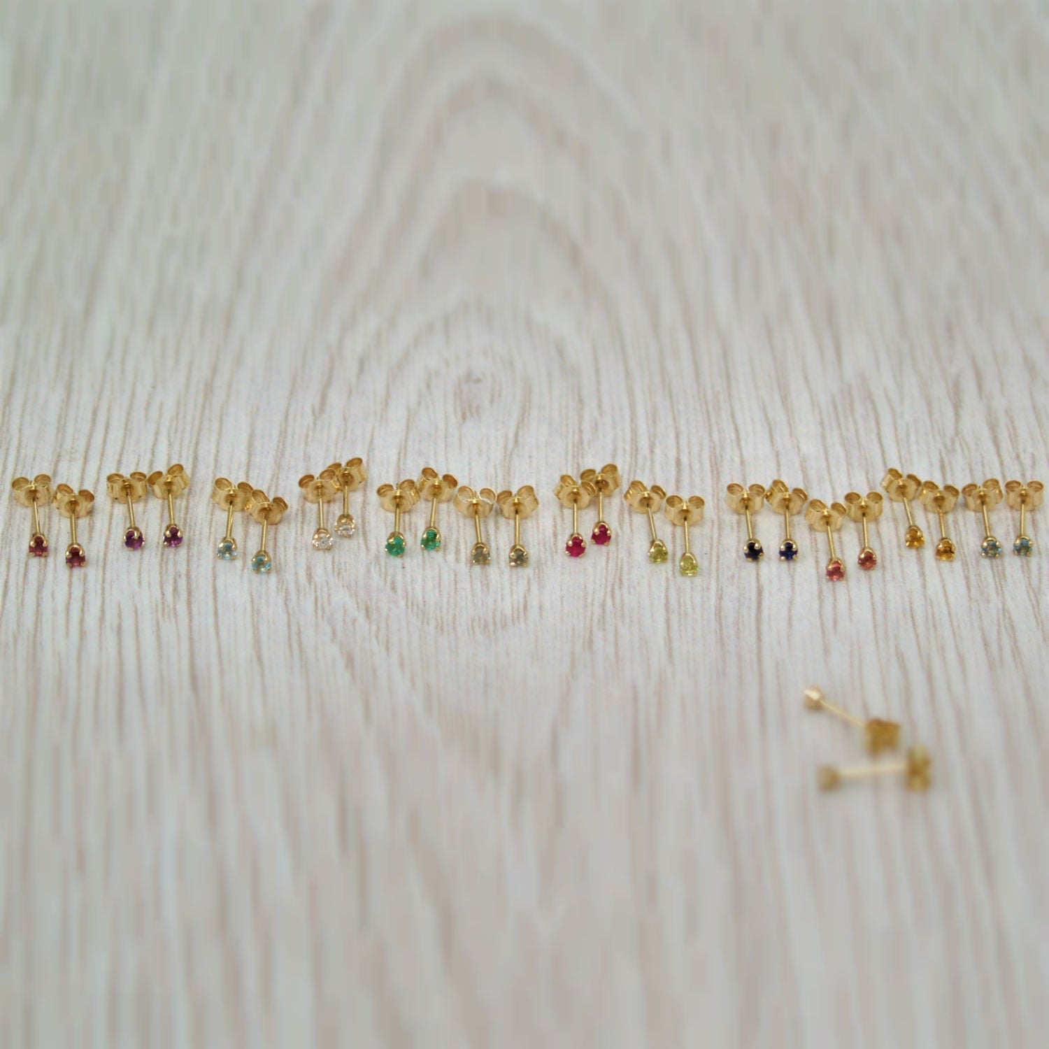 9ct yellow gold tiny 2mm birthstone stud earrings