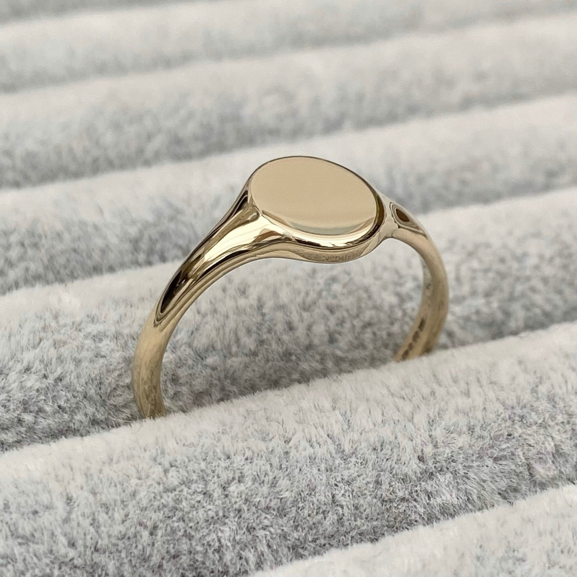 Handmade 9ct yellow gold ladies classic small oval signet ring