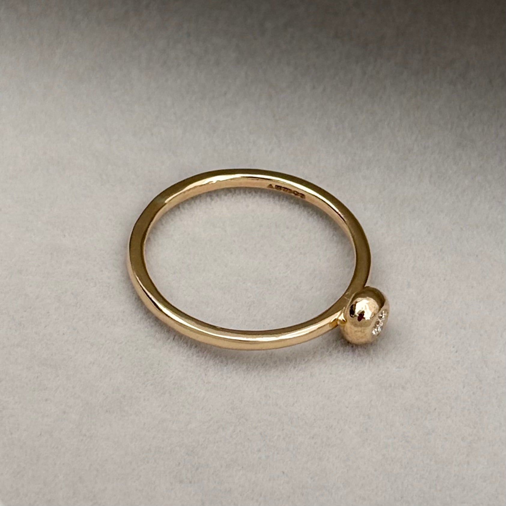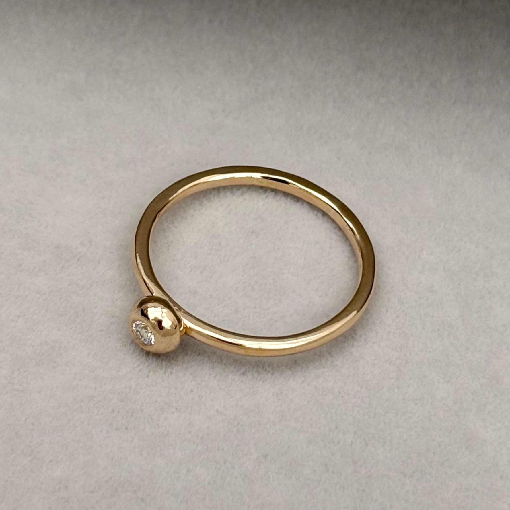 Handmade 9ct solid yellow gold natural diamond nugget stacking ring - Size K 1/2 - 5 1/2