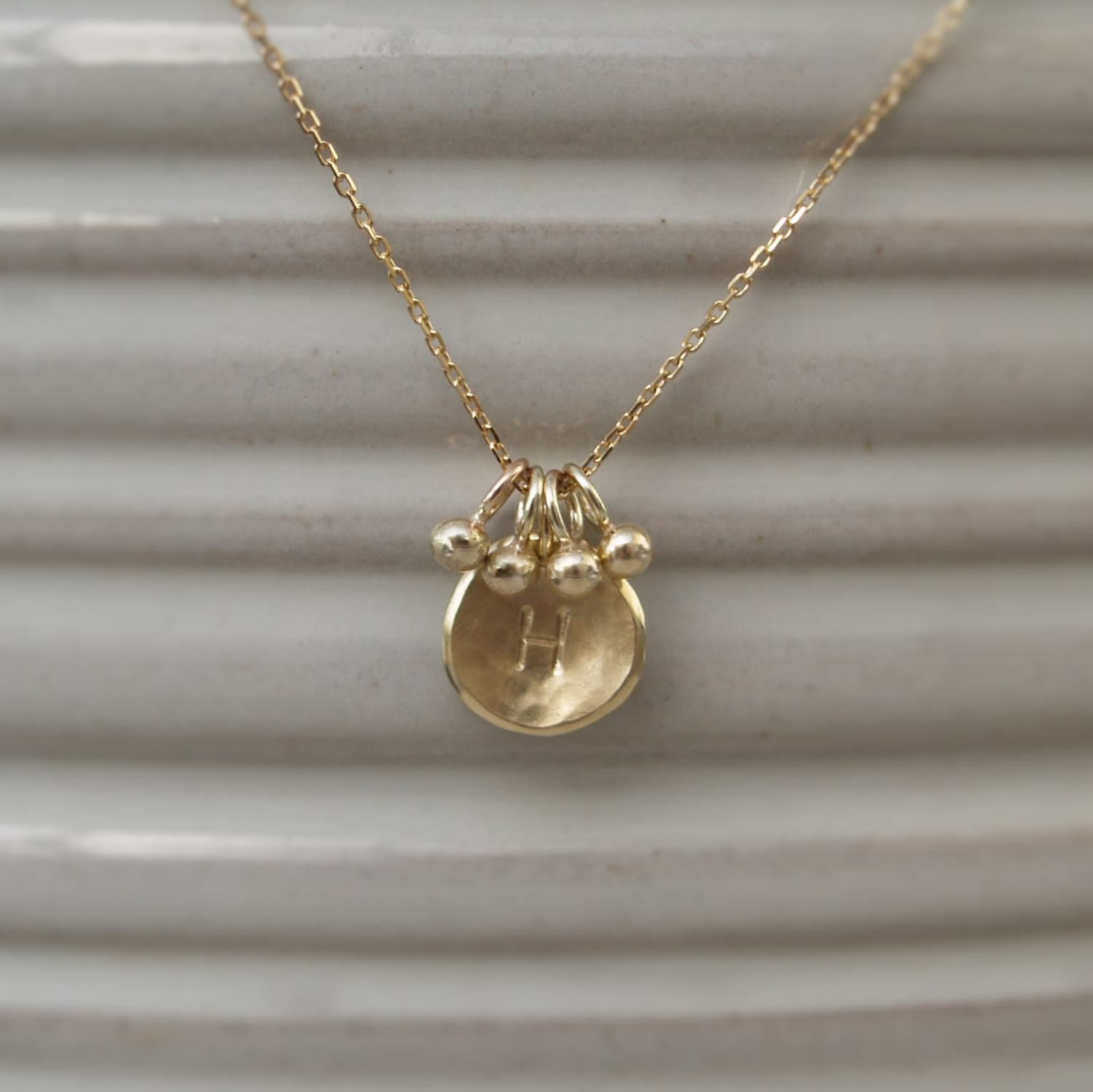 Handmade 9ct solid yellow gold small 10mm petal charm pendant with seed ball detail on a chain - Can be personalised