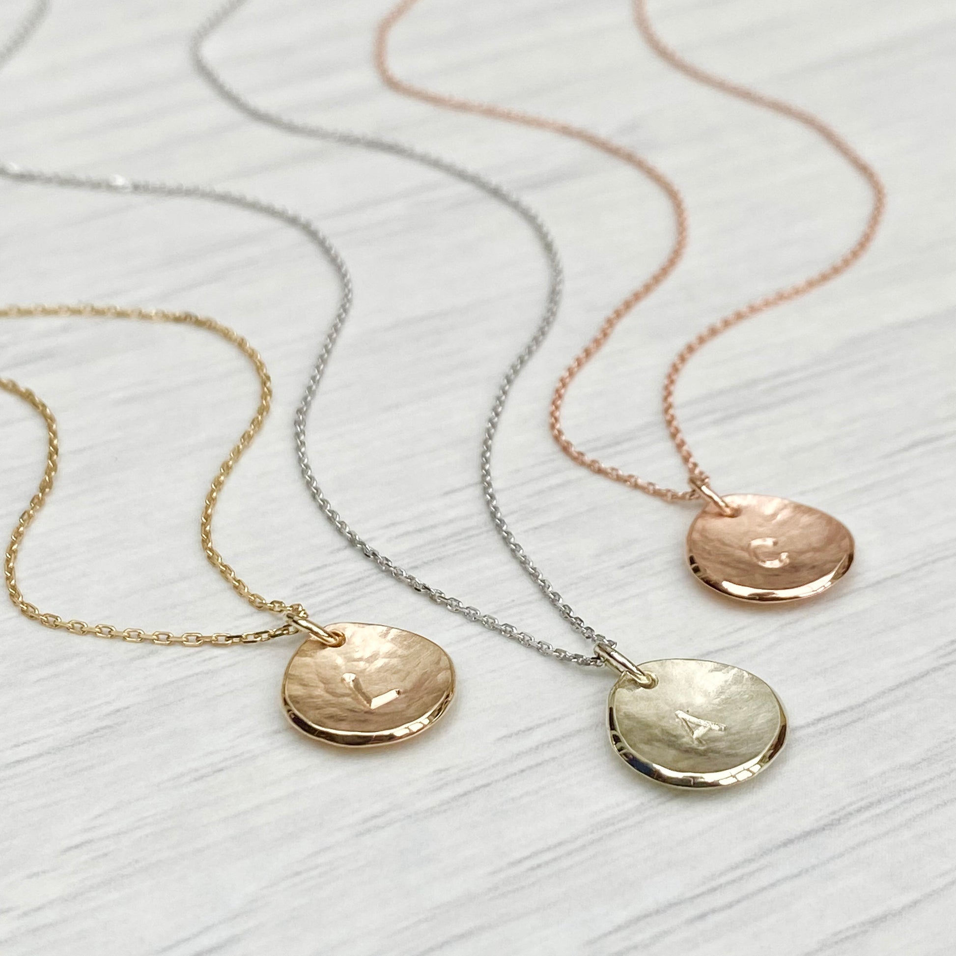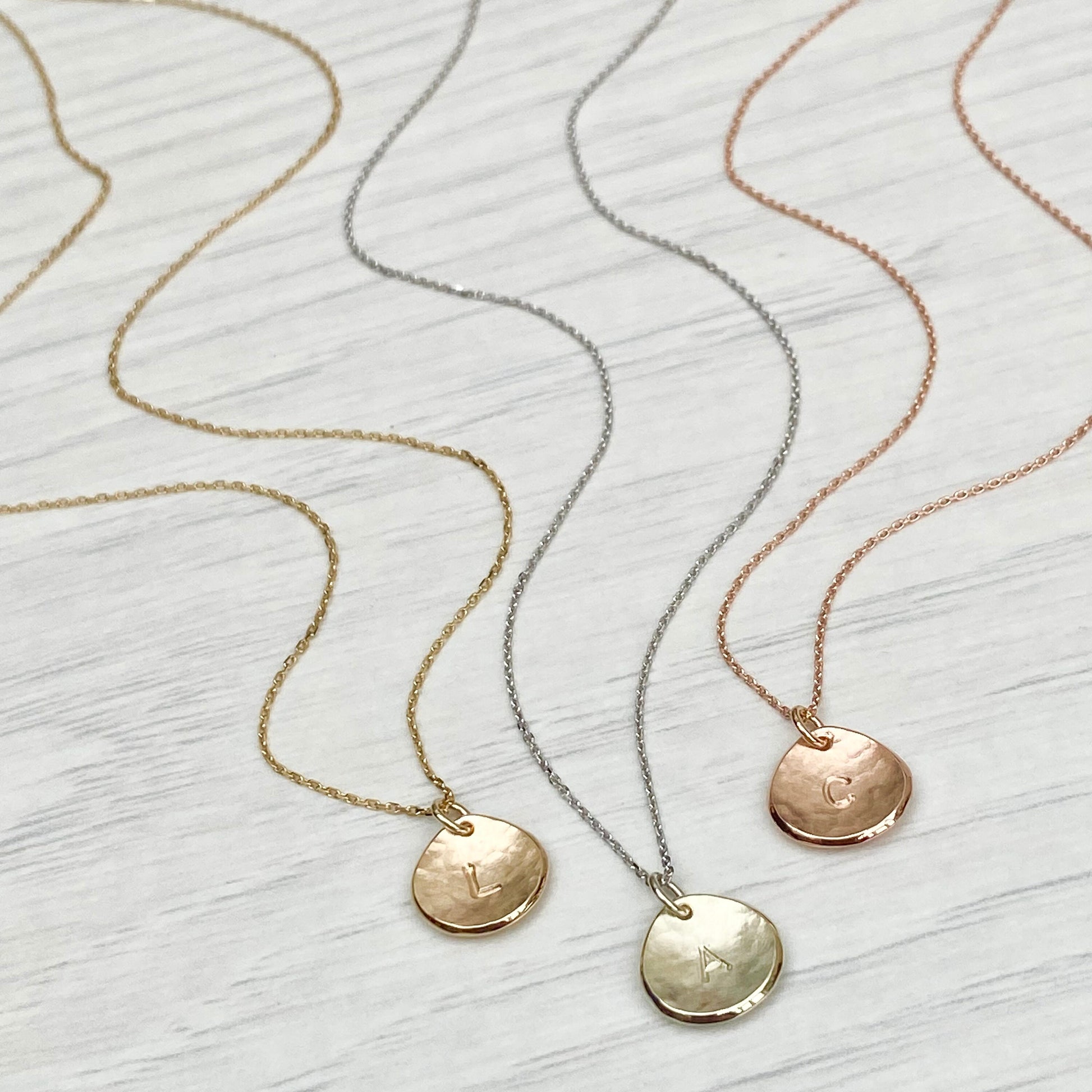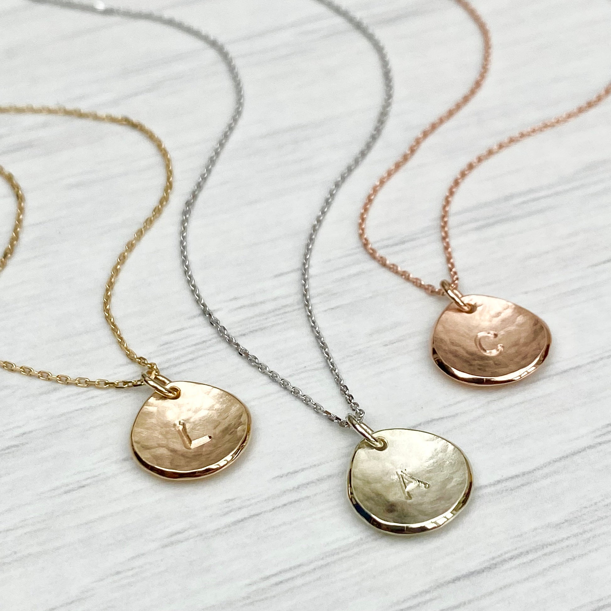 The pendant is personalised with a bold letter font. Also available without an initial.