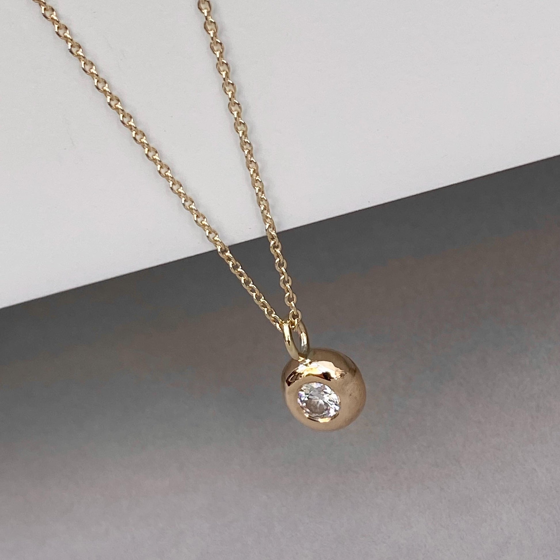 Handmade 9ct solid yellow, white or rose gold 4mm 0.25ct round lab diamond nugget pendant on a trace chain