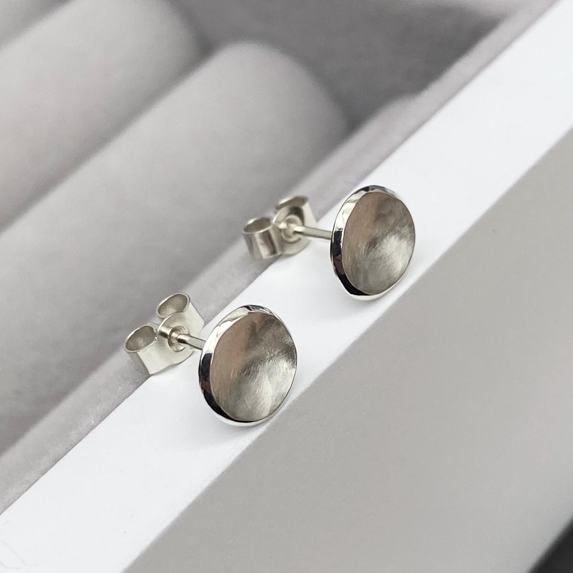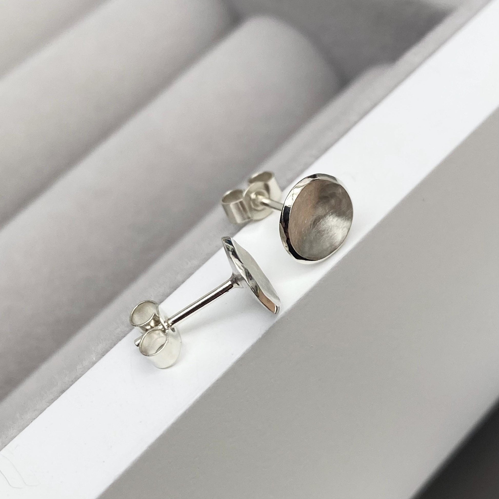 Handmade 9ct white gold 7mm disc petal stud earrings