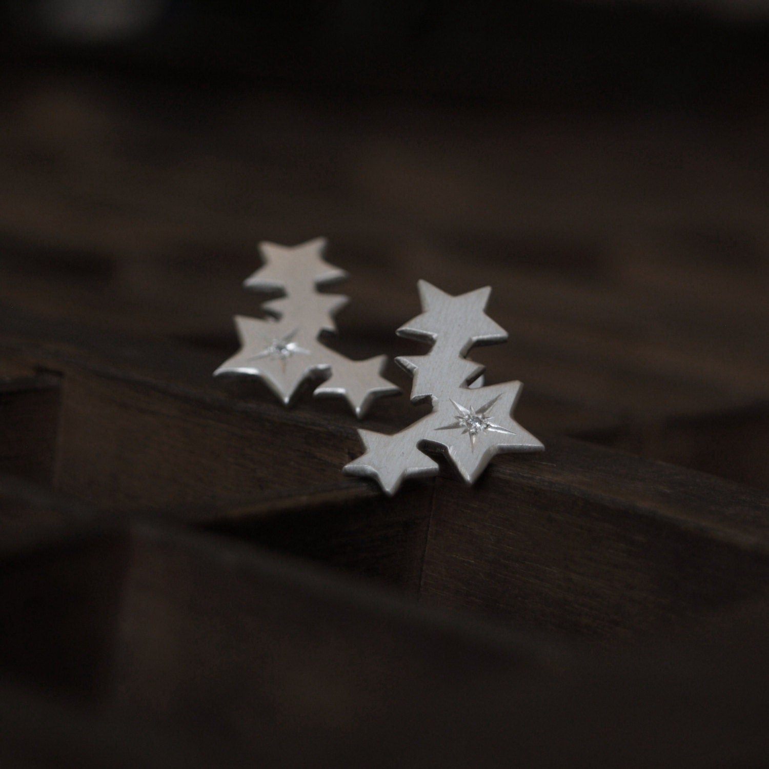 Star engraved set with 1.5mm round diamonds in each earring (HSI)
