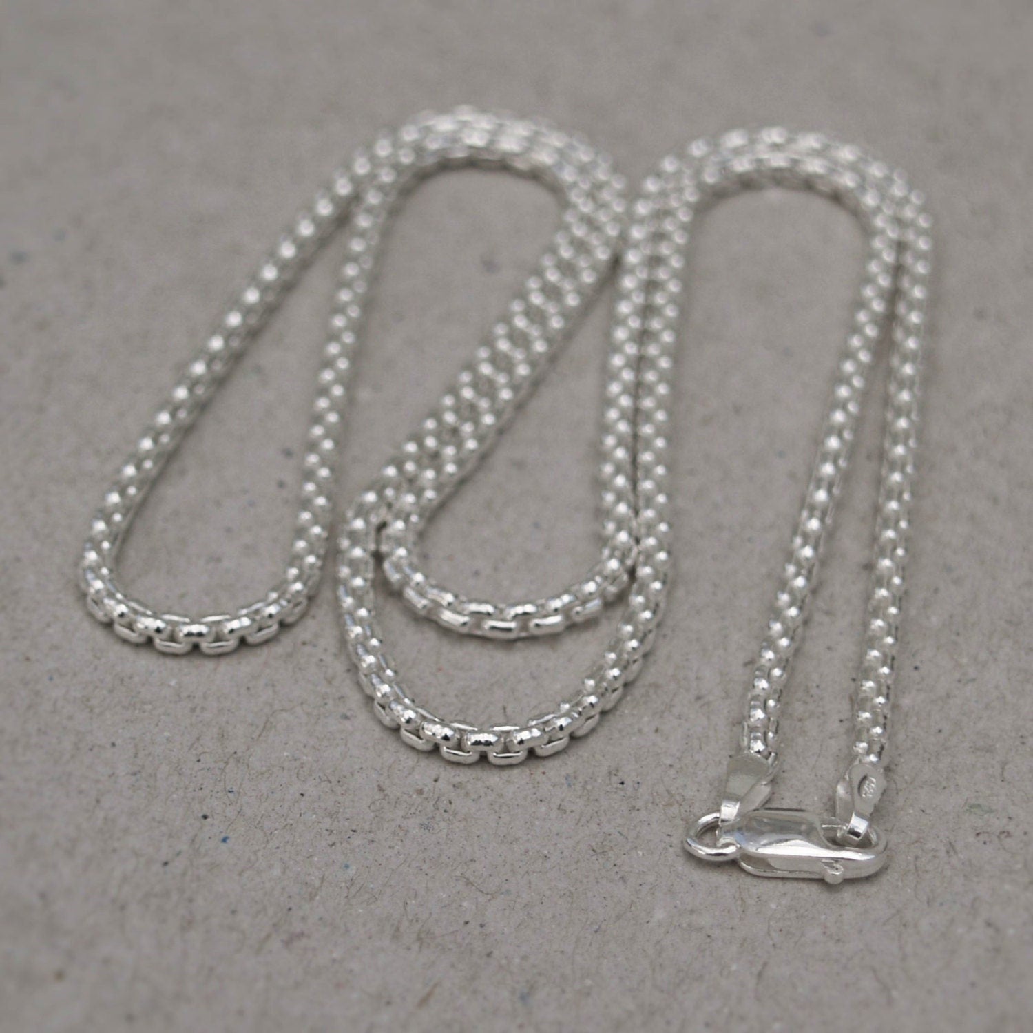 Oxidised or polished solid silver 2.5mm wide box belcher chain