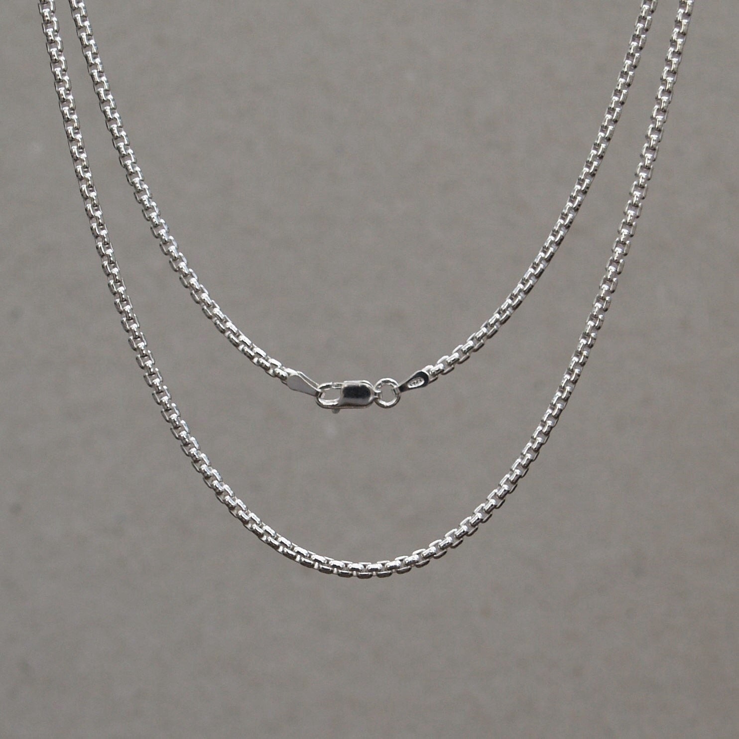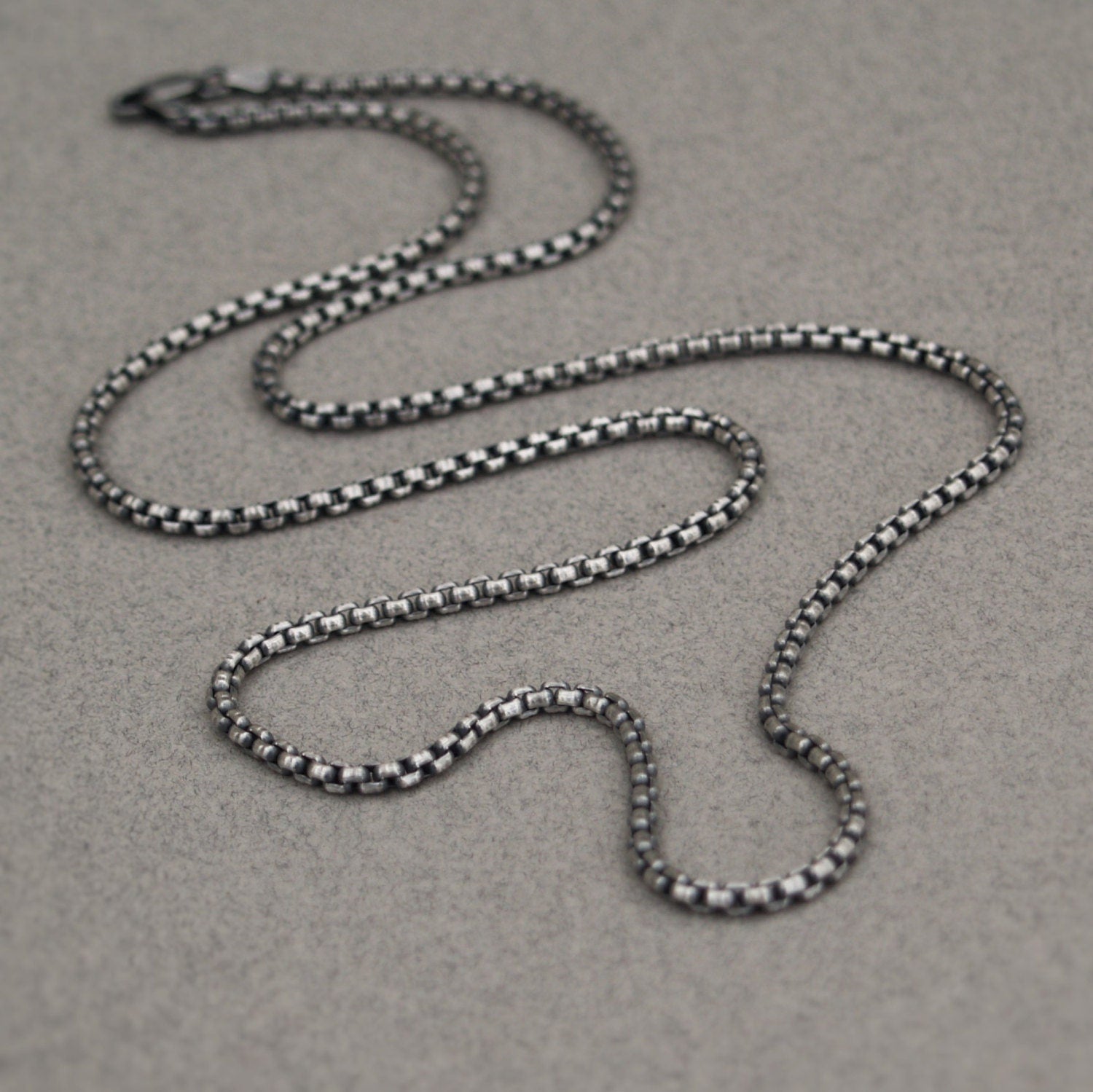 Oxidised or polished solid silver 2.5mm wide box belcher chain.