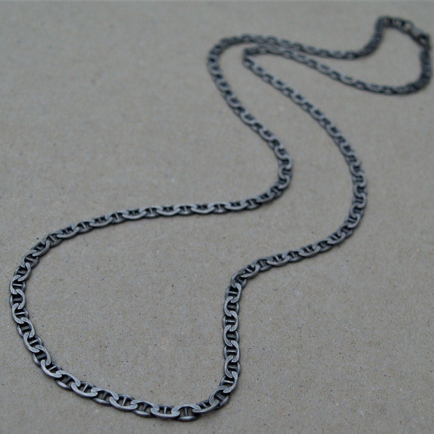 Solid silver 3.7mm wide anchor flat curb chain - Oxidised or polished