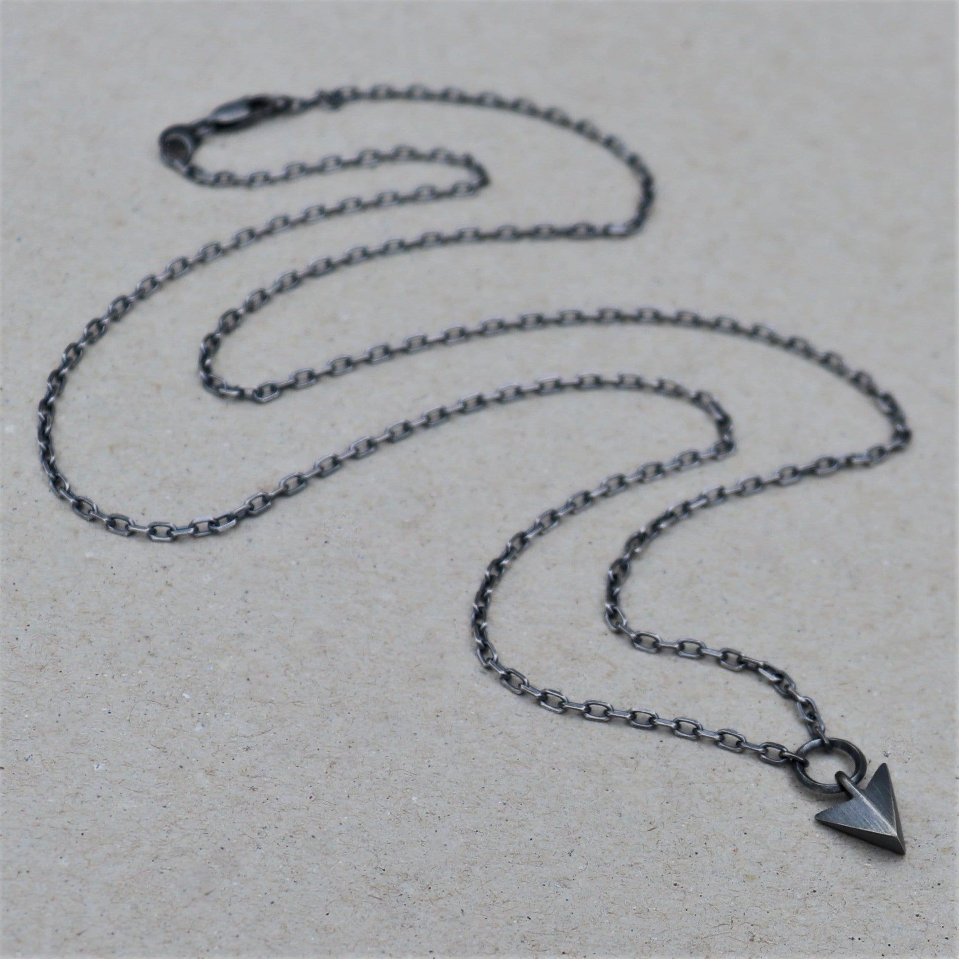 Solid silver arrow loop detail pendant on a diamond cut trace chain - Oxidised or polished