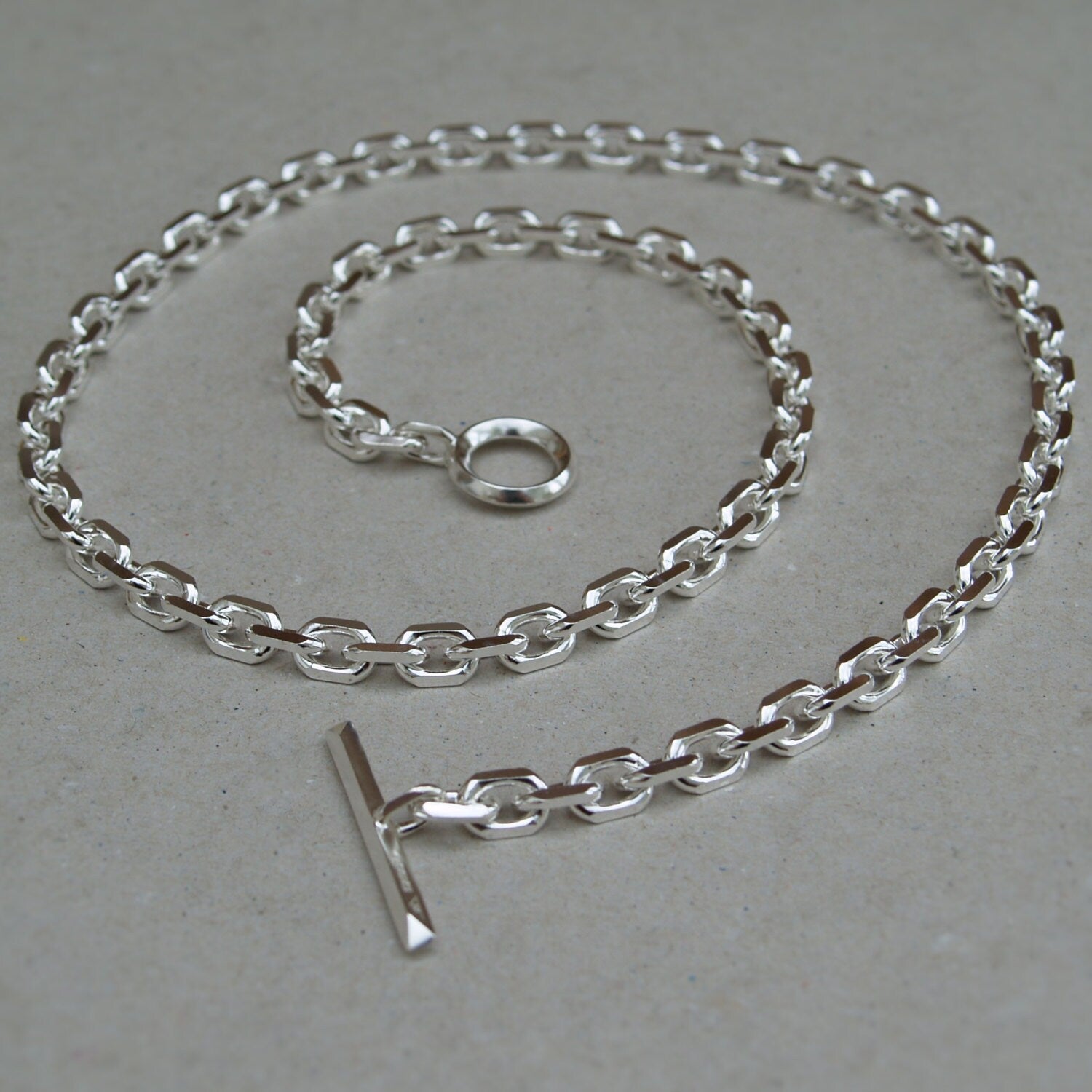Oxidised or polished solid silver extra heavy 6.6mm wide diamond cut trace chain with a unique T-bar design - Men's jewellery