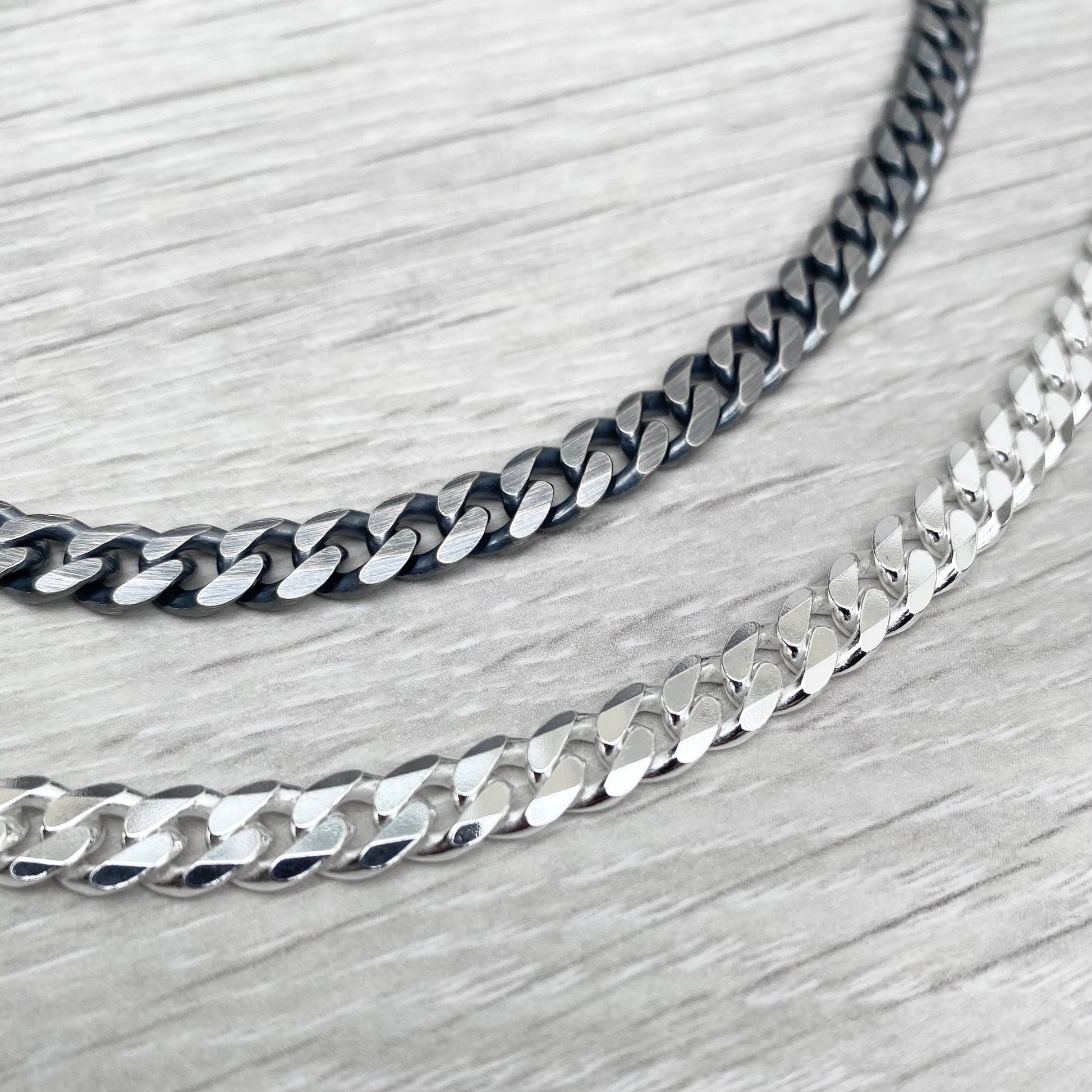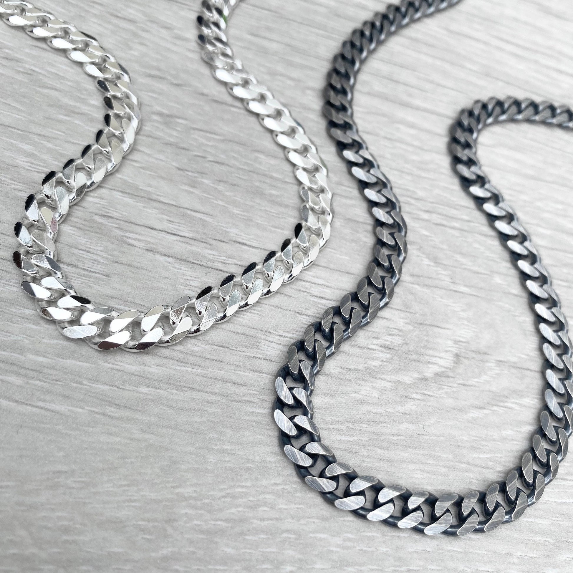 Oxidised or polished solid silver heavy 6.6mm wide curb chain.