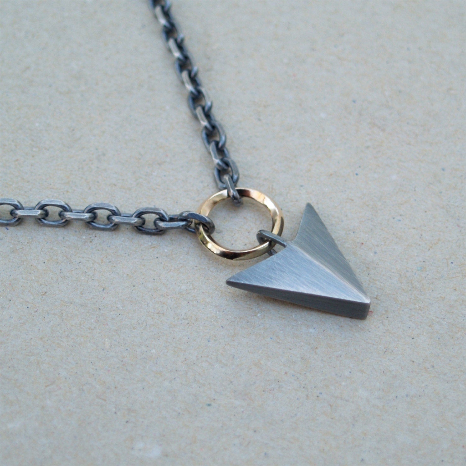 Handmade solid silver large arrow and 9ct yellow gold loop pendant on a diamond cut trace chain - Oxidised or Polished