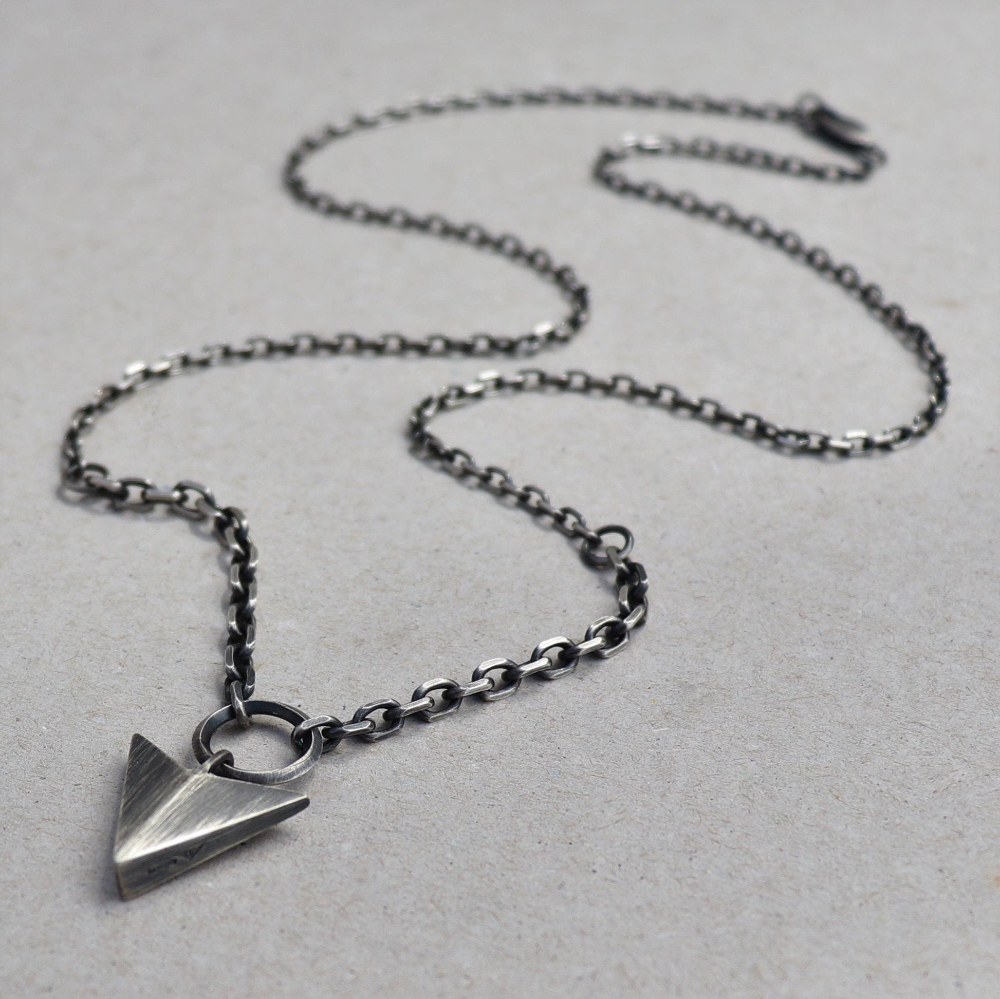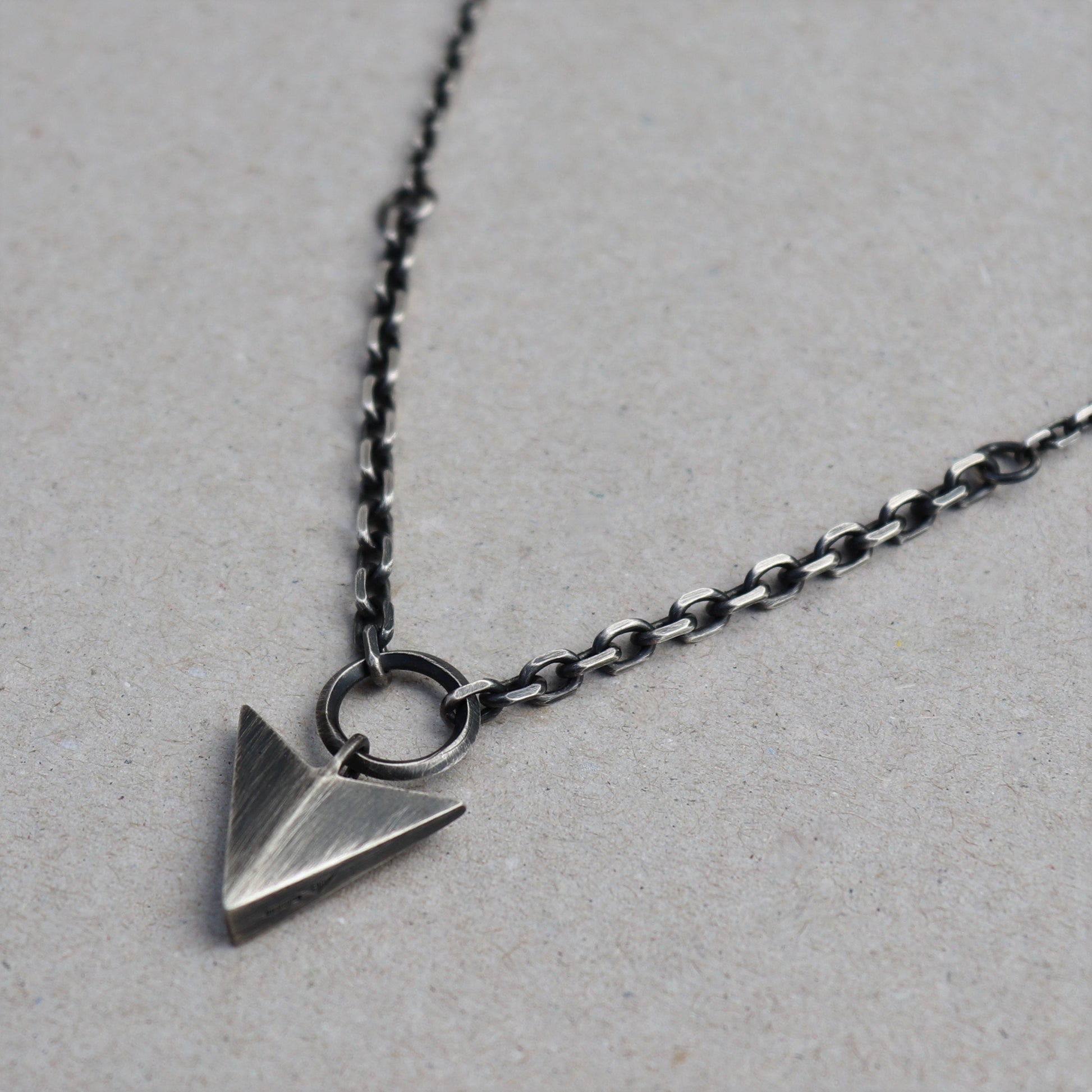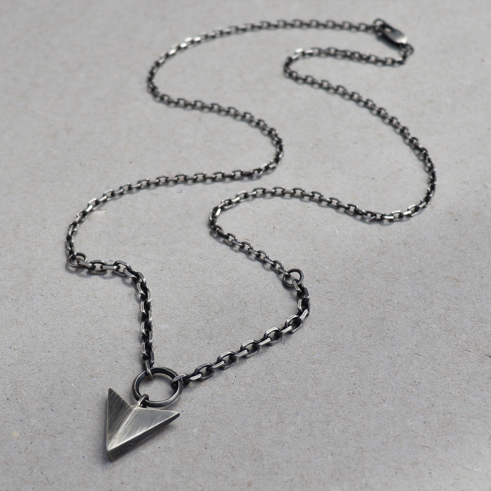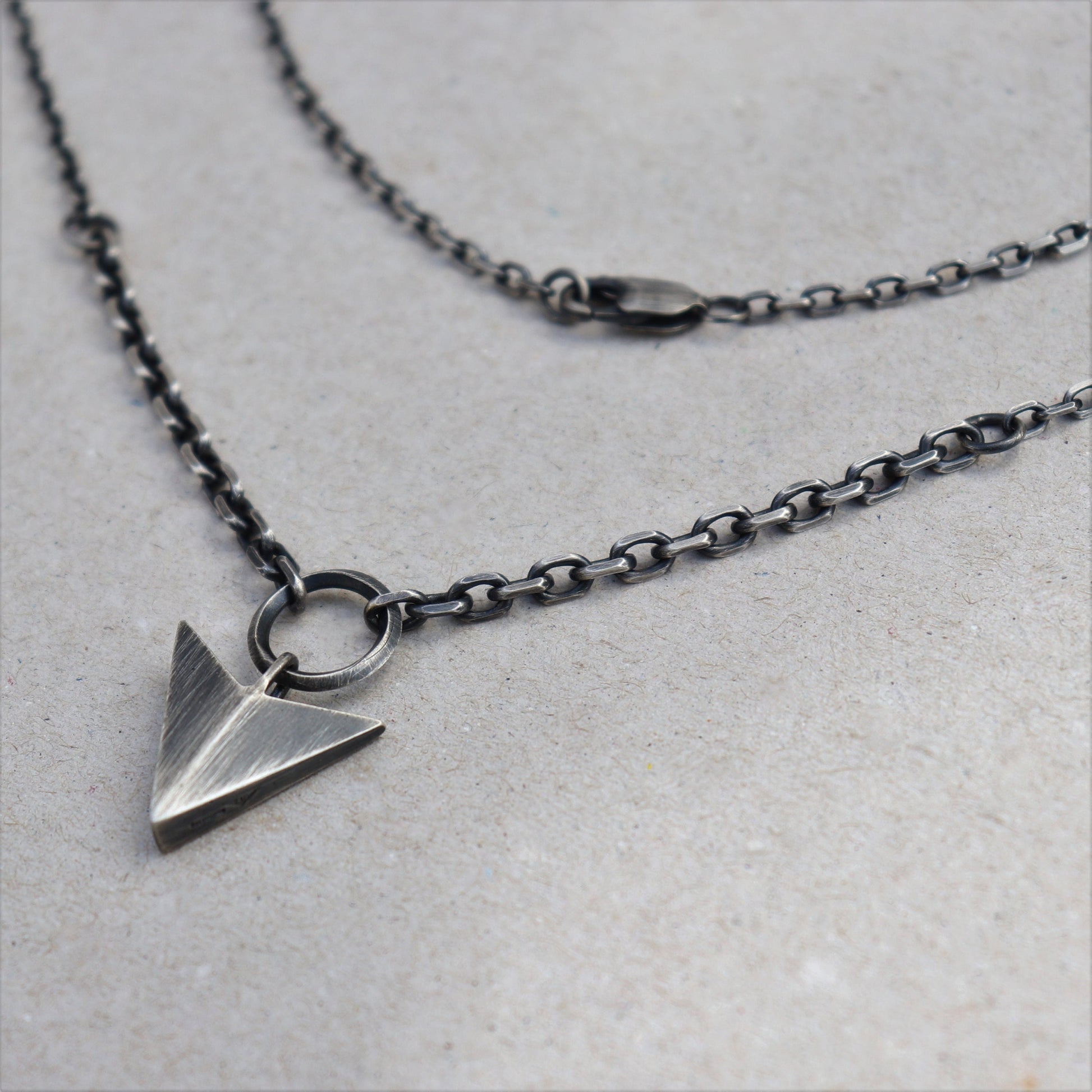 Oxidised solid silver large arrow pendant on two widths of diamond cut trace chain
