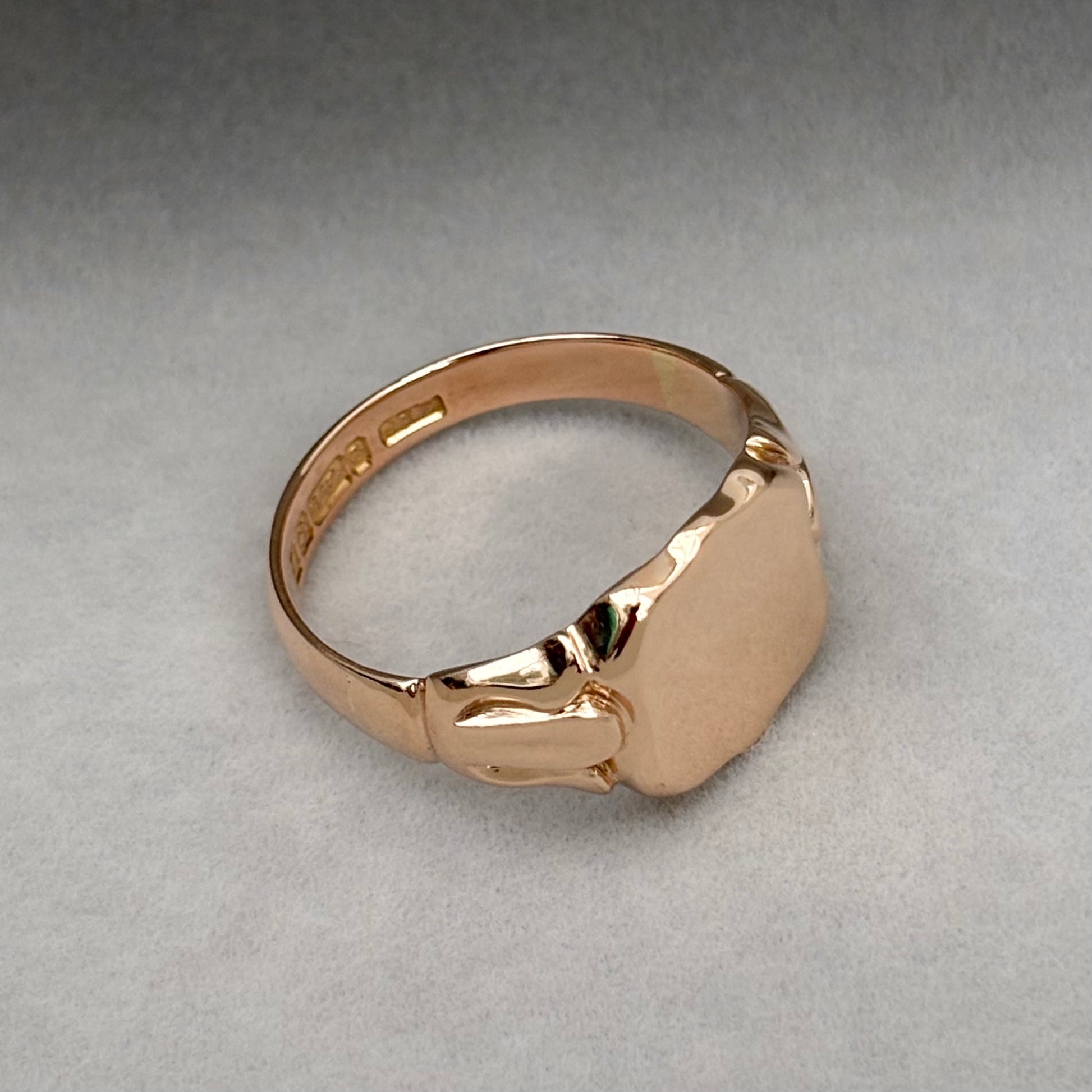 Vintage 1920s 9ct rose gold shield signet ring - Over 100 years old